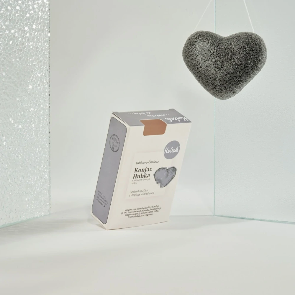 - Kvitok - Hĺbkovo čistiaca hubka Konjac s aktívnym čiernym uhlím