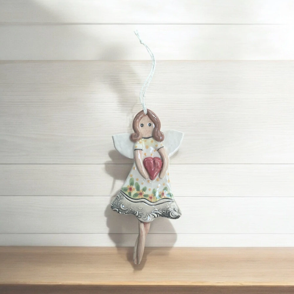 Ručne tvarovaný, maľovaný jemnými farbami a glazúrou, pôsobí čisto a nevinne – ako symbol pokoja, lásky a tichej radosti.