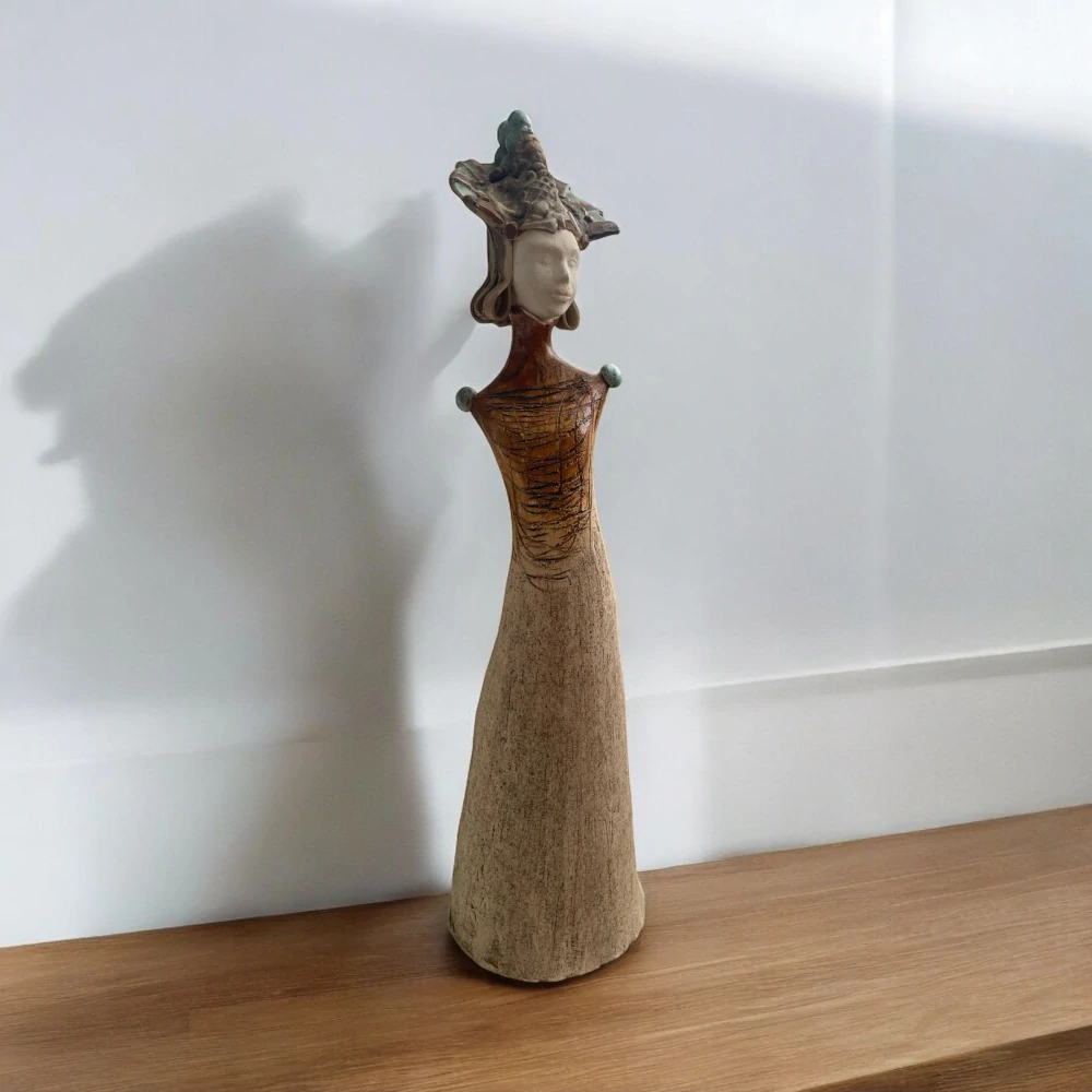 Zlatá múza – ručne tvorená keramická dáma v odtieňoch slnka a zeme. Jemná elegancia spojená s pokojom prírody. Symbol láskavosti, hojnosti a vďaky za všetko, čo rozkvitá okolo nás.🌾