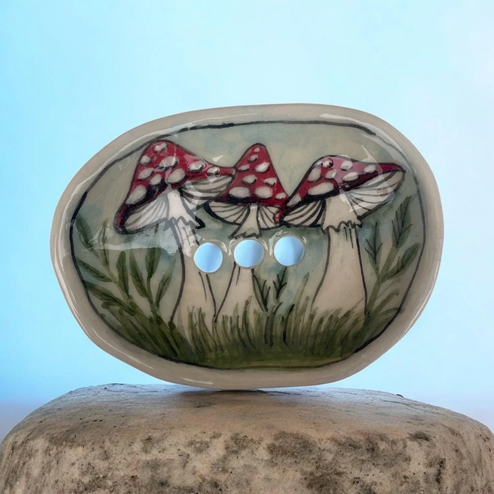 Keramická hand made mydelnička plná radosti - Lesné muchotrávky 🍄 :
