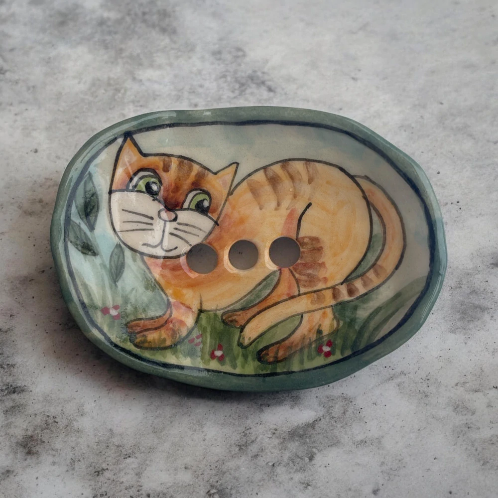 Keramická hand made mydelnička plná radosti - Hravá mačička 🐱: