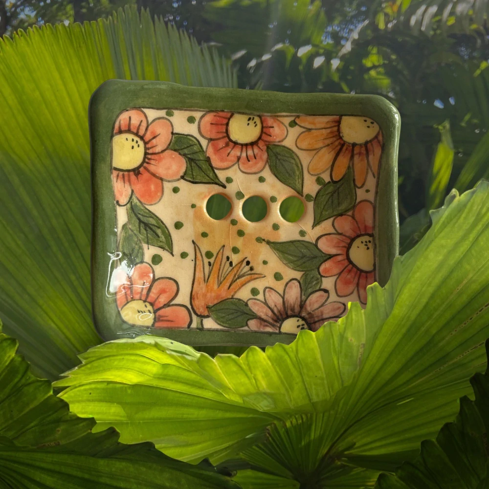 Keramická hand made mydelnička plná radosti - Kvetinový tanec 🌸: