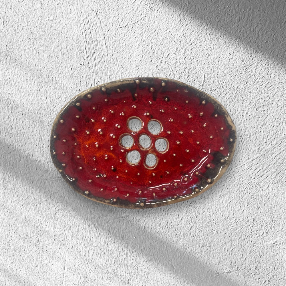 Keramická hand made mydelnička plná radosti - Rubínové pohladenie ❤️: