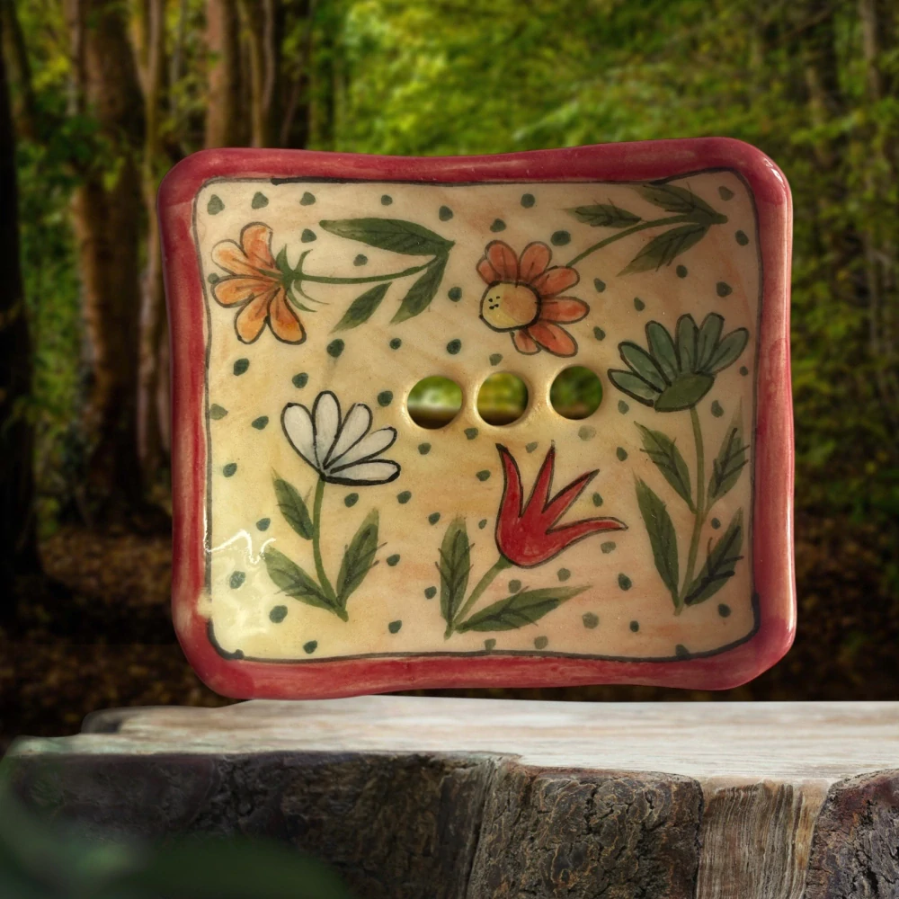 Keramická hand made mydelnička plná radosti - Rozkvitnutá lúka 🌼: