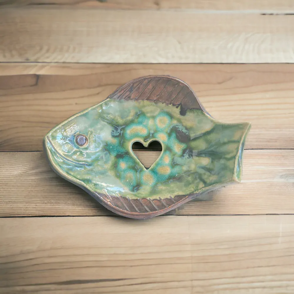 Keramická hand made mydelnička plná radosti - Rybka so srdcom mora 🐟: