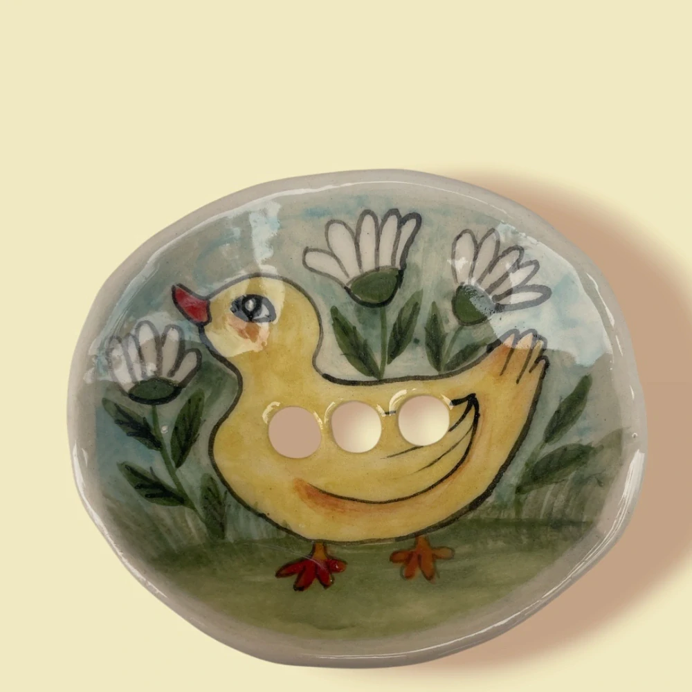 Táto ručne vyrábaná keramická mydelnička s motívom usmiatej kačičky pôsobí hravo, nežne a hrejivo.