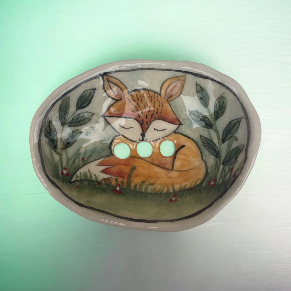 Keramická hand made mydelnička plná radosti - Spiaca líška 🦊: