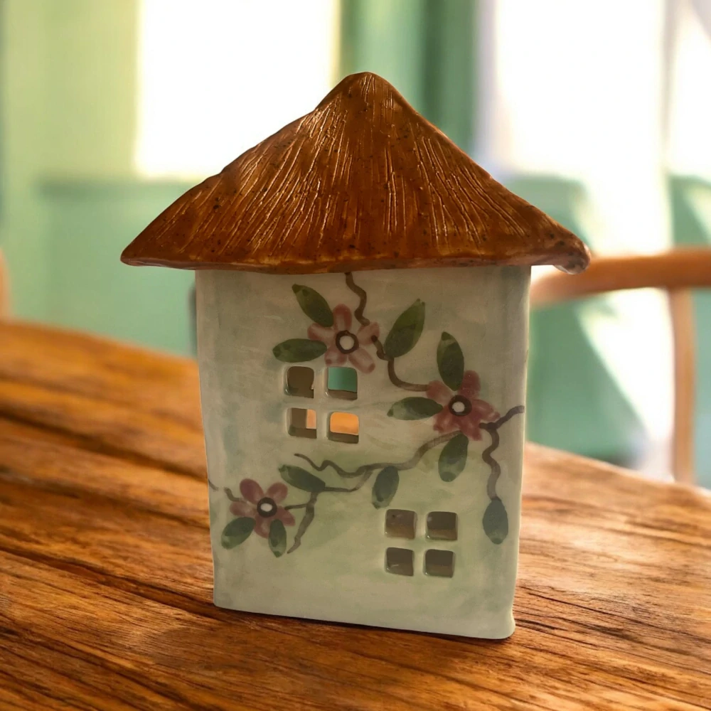 Hand - made - Keramický svietnik & aromalampa Kvetinový domček harmónie25 €/ ks