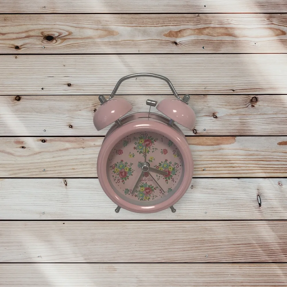 Smaltované retro hodinky ABBY ako budík v krásnej ružovej farbe s dekorom ruží vo vintage vzhľade z dielne slovinskej značky Isabelle Rose.