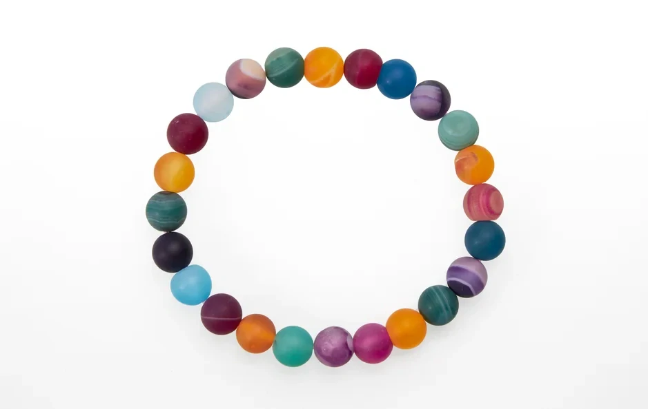 Tento náramok je nádhernou mozaikou farieb a energií – každý kamienok Achátu v sebe ukrýva jedinečný príbeh Zeme.