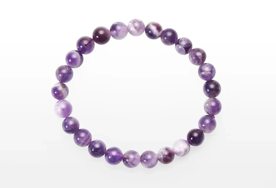 Náramok z Chevronového Ametystu s korálkami o priemere 8 mm je nádherným príkladom prirodzenej elegancie a duchovnej sily.