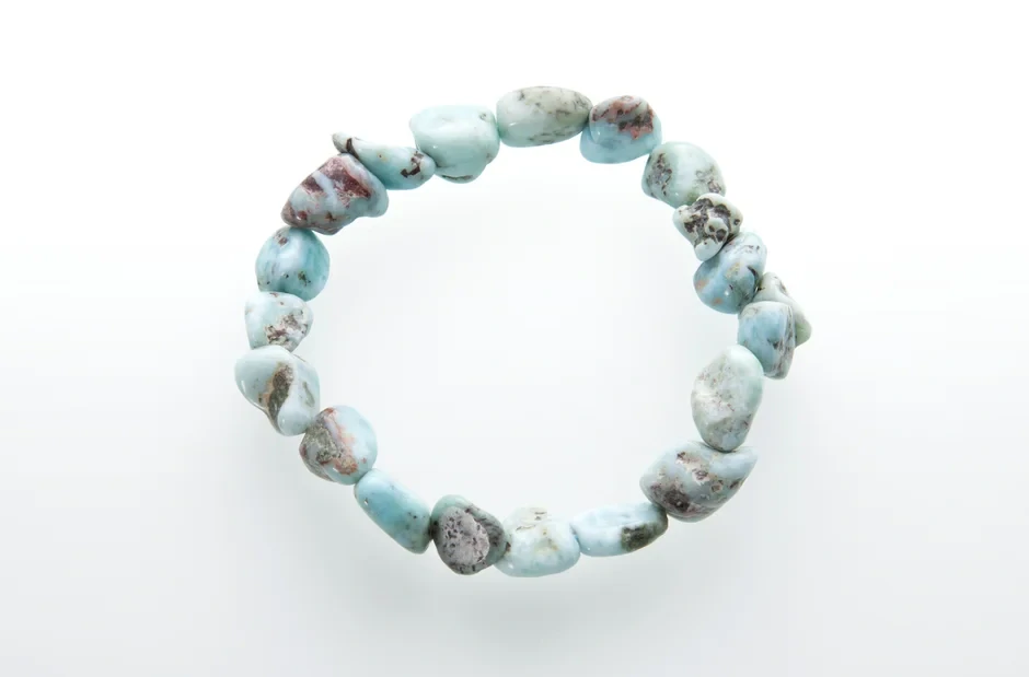 Tento náramok z Larimaru je ako kúsok neba a oceánu spojený do jedného nádherného šperku. Jemne tromlované kúsky Larimaru v sebe ukrývajú farby karibského mora, od jemných odtieňov bledomodrej až po hlbokú tyrkysovú, s jemnými bielymi žilkami, ktoré pripomínajú vlny láskavo obmývajúce pobrežie. Každý kúsok je jedinečný, nesie v sebe príbeh o tropických brehoch, pokoji a spojení s prírodou.