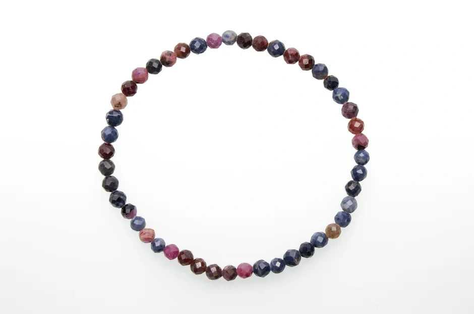 Náramok z fazetovaného Rubínu a Zafíru s priemerom korálok 4 mm je elegantným a očarujúcim šperkom, ktorý spája dva vzácne drahokamy symbolizujúce kráľovskú noblesu a hlbokú vnútornú silu.