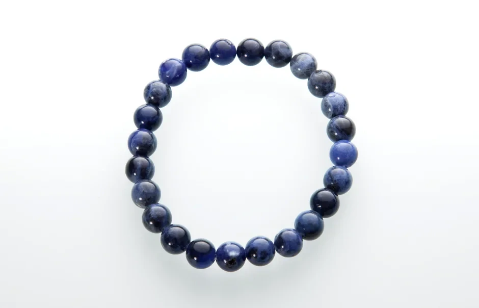 Náramok zo Sodalitu, tvorený 8mm korálkami, je nádherným prejavom elegancie a vnútorného pokoja.