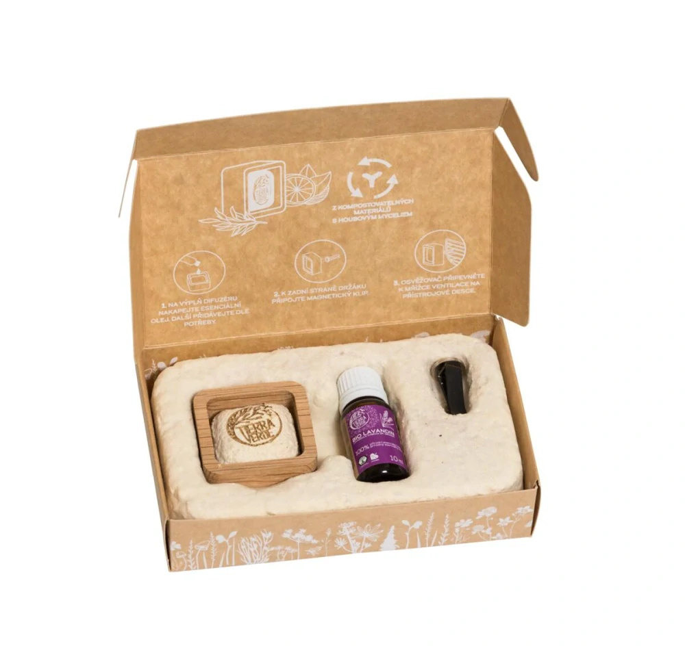Spríjemnite si krátke aj dlhé jazdy skutočne prírodnými vôňami. Umelé parfumy môžu v uzavretom priestore pôsobiť príliš intenzívne až dráždivo. Náš inovatívny osviežovač vzduchu vnútro automobilu jemne prevonia BIO esenciálnymi olejmi, ktoré aromaterapeuticky pôsobia na telo aj myseľ.