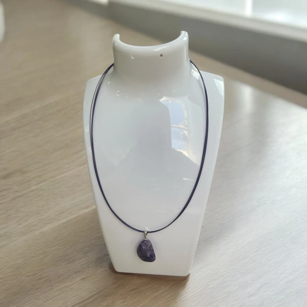 Fialová farba Čaroitu v kombinácii s viacstrunovým dizajnom náhrdelníka vytvára dokonalú harmóniu, ktorá symbolizuje duchovnú silu, ochranu a vnútorný pokoj.